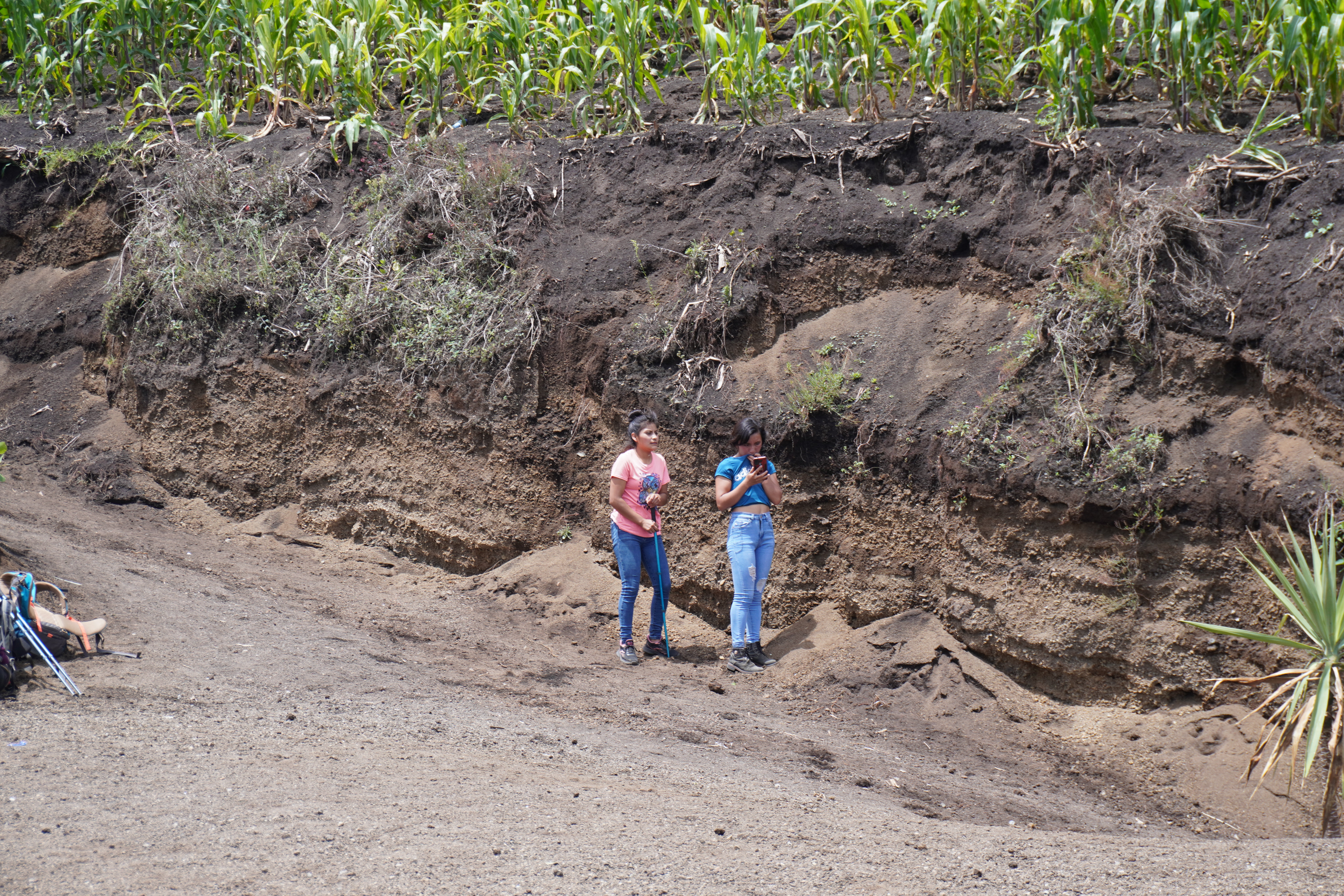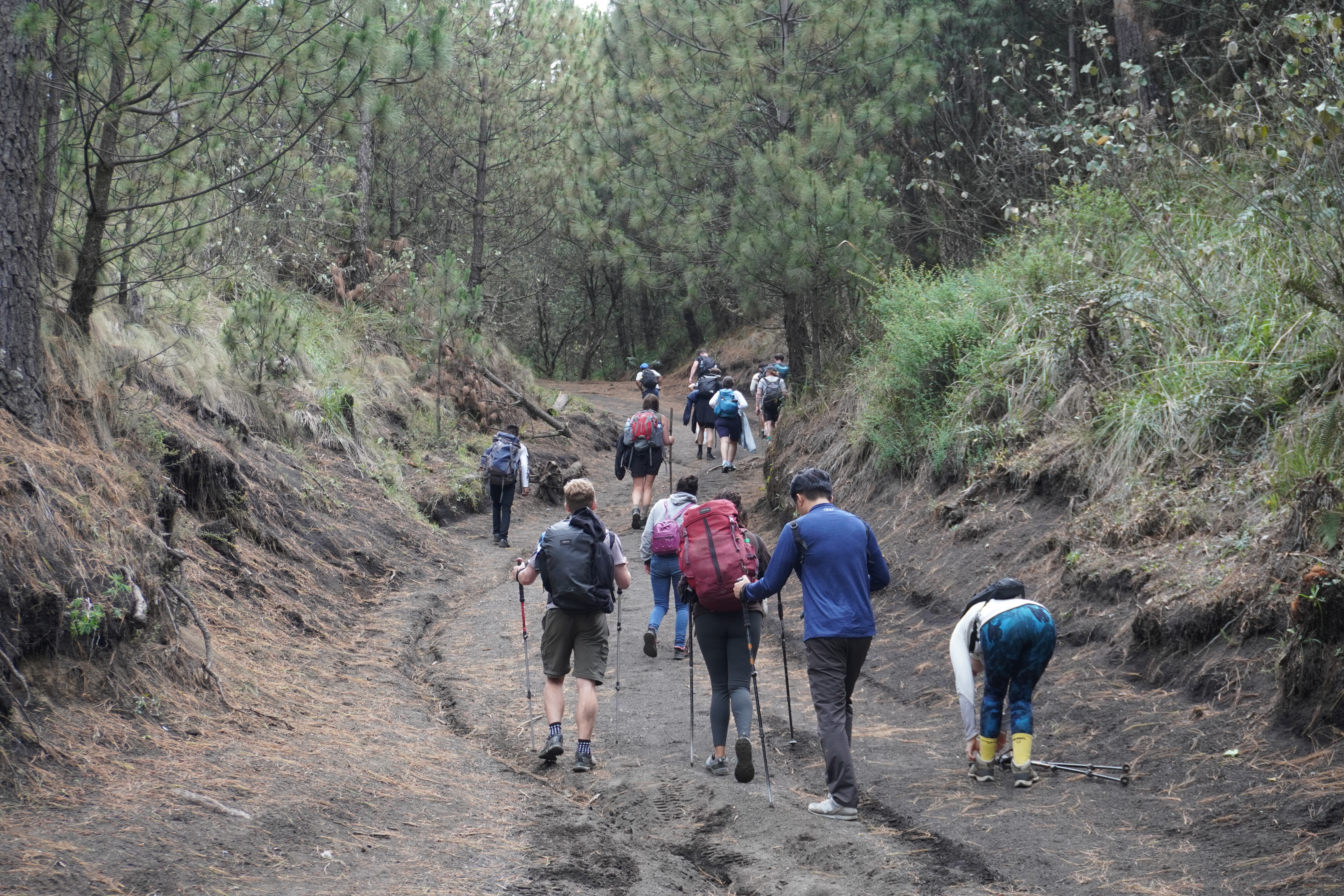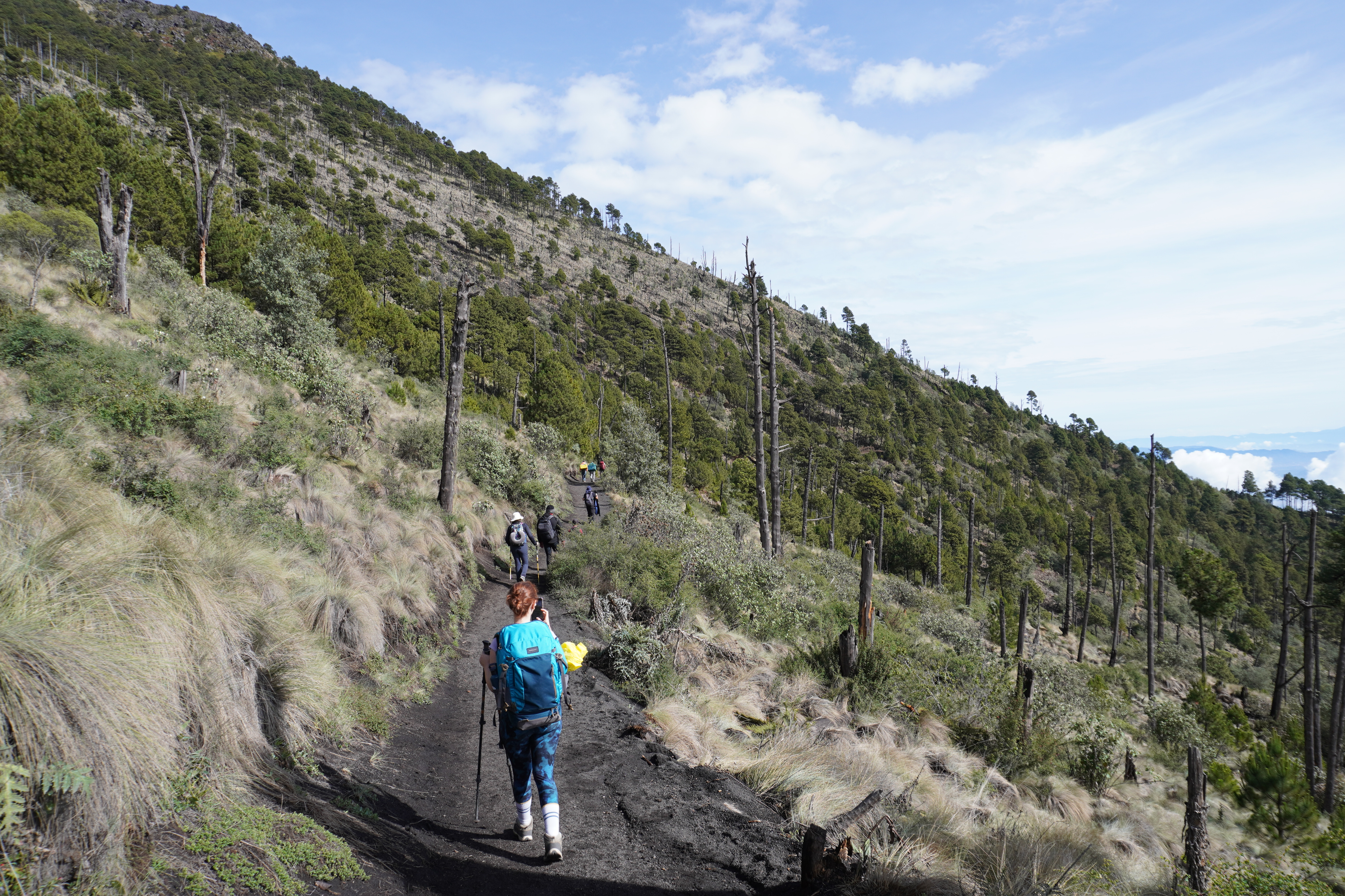 搭車的終點也是整個路線上坡路段的終點,在這裡原本可以毫無障礙的眺望水火山Volcán de agua,可惜這天雲太多被遮住了,從這裡再走45分鐘就可以抵達過夜營地,接下來的路程都很平緩,不太費體力。