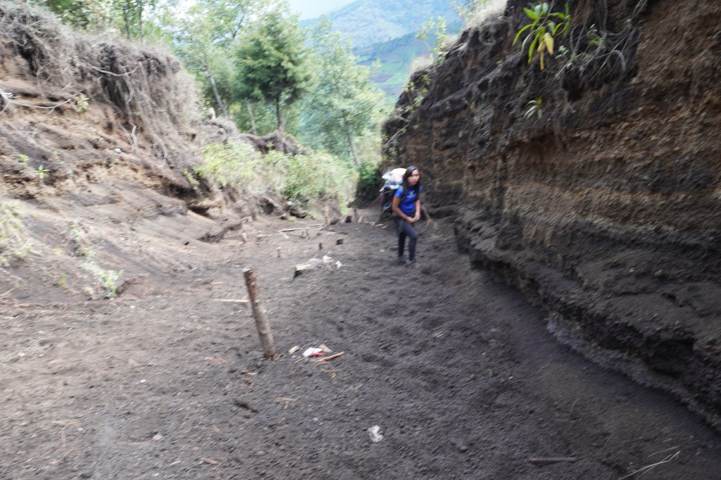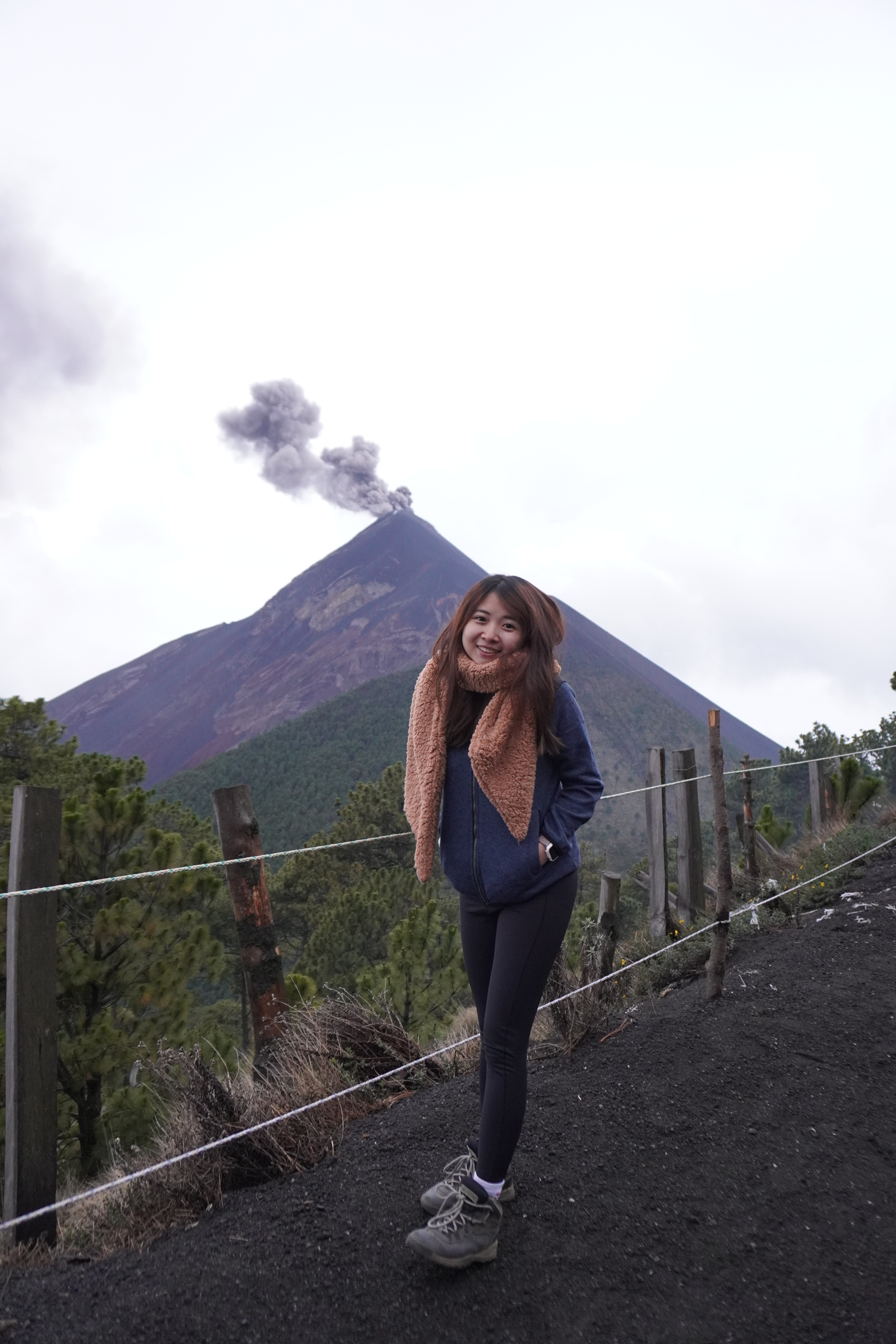 到營地之後嚮導會問有沒有人想去爬Fuego,一個人200Q,可以爬到離火山口最近的距離大概是照片中最後還有樹木植被的地方,再前進就太危險了。(大概是下下圖剛好被我的頭擋住的地方)