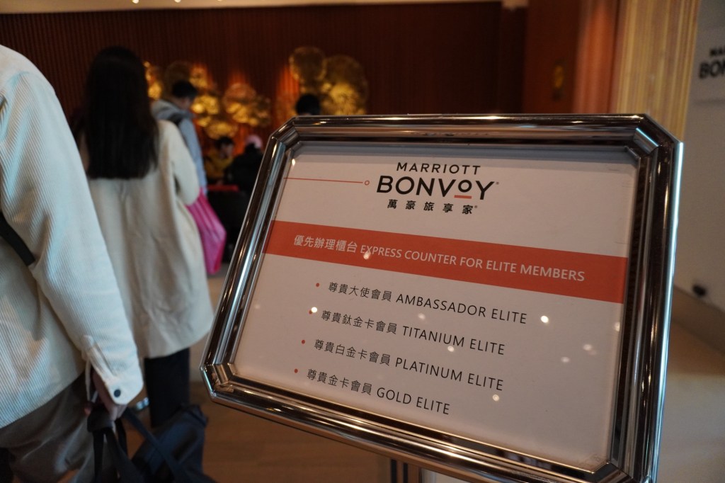 Check in櫃檯是矮桌,讓住客坐著舒適辦手續,萬豪白金以上會員可排專屬通道。
