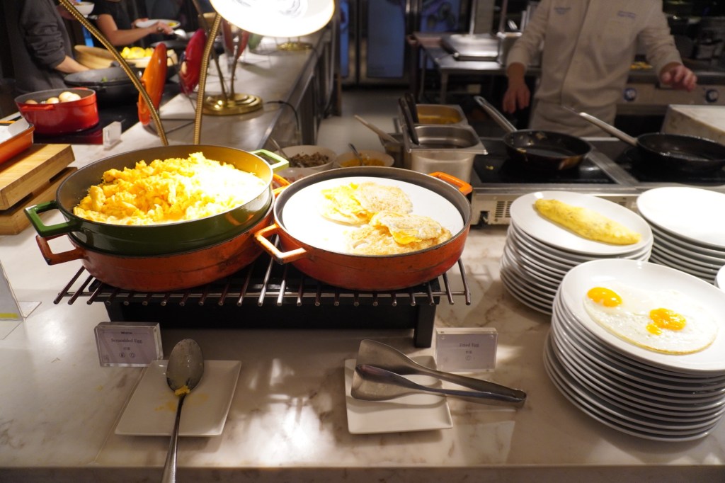 早餐在知味西餐廳用餐,有7點、8點、9點半可以選,check in時會給單張有QR code可以掃描登記時段。整體擺設就是一般大飯店自助式早餐的樣子,比較特別的是還有戶外沙發的位置。
