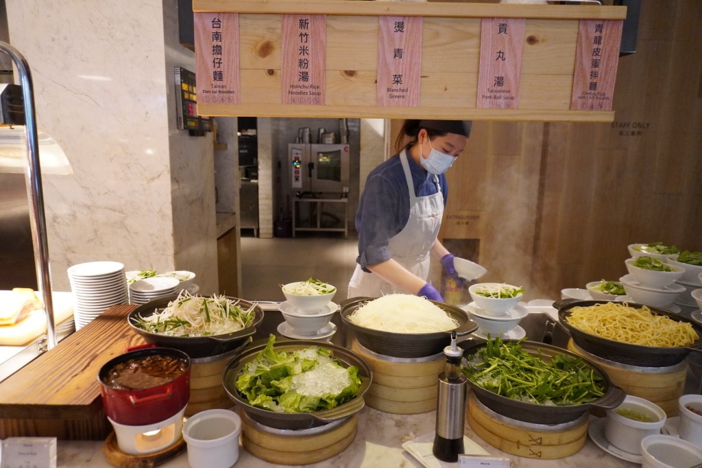 中式及西式餐點都有,白粥、海鮮粥、青菜、豆腐等等,最讓我驚豔的是現煮擔仔麵及米粉湯,超酷的,因為怕份量太大吃不下別的我只點了貢丸湯,還滿好喝的,也可以加青菜,營養滿分。
