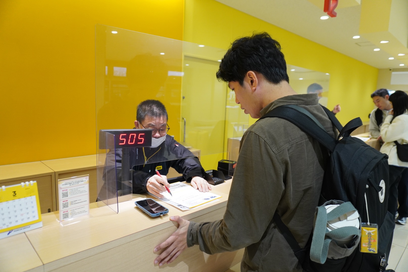 抵達店舖之後,電視螢幕會顯示號碼,到對應的櫃檯就可以開始辦理手續。我們的服務人員是一位日本學校退休的教授(台灣人),跑來租車公司工作真的太酷了!