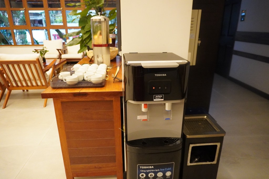 大廳有廁所還有迎賓茶點可以享用,飲水機也是環保人必備!最愛有飲水機的飯店了。