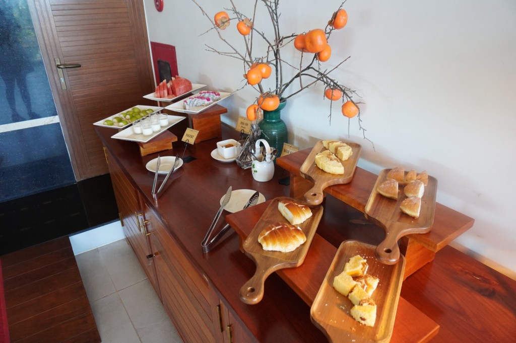 早餐包含在房費裡,餐廳位在頂樓,基本的麵包水果飲品都有,我覺得以這個價格的住宿來說,早餐算是很有誠意了。